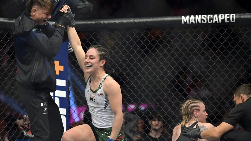 «Siempre que estaba en el suelo pensaba, ‘tienes que levantarte, tienes que levantarte'», expresó Grasso, una boxeadora que ha mejorado sui jiu-jitsu, método con el que ganó la contienda. «Ahora estoy terminando peleas, que es increíble. Estoy madurando, estoy mejorando como peleadora», expresó la nueva monarca.