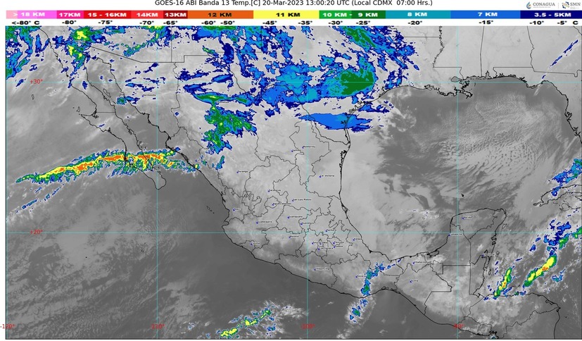 Finalmente, se prevé ambiente caluroso a muy caluroso sobre el Pacífico Mexicano, con temperaturas máximas de 35 a 40 °C en zonas de Michoacán y Guerrero.