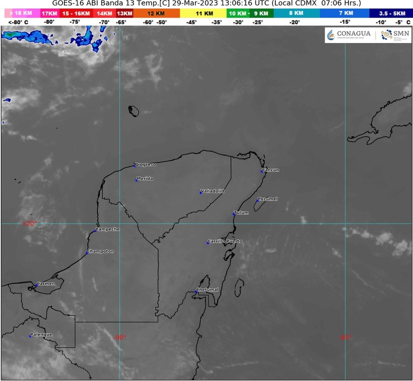 Finalmente, para la Península de Yucatán se espera cielo despejado por la mañana y parcialmente nublado por la tarde, sin lluvias en la región. Ambiente templado por la mañana. Por la tarde, ambiente cálido en Quintana Roo, y caluroso en zonas de Campeche y Yucatán. Viento de componente este de 15 a 30 km/h en la región, con rachas de 50 a 60 km/h en Campeche y Yucatán.