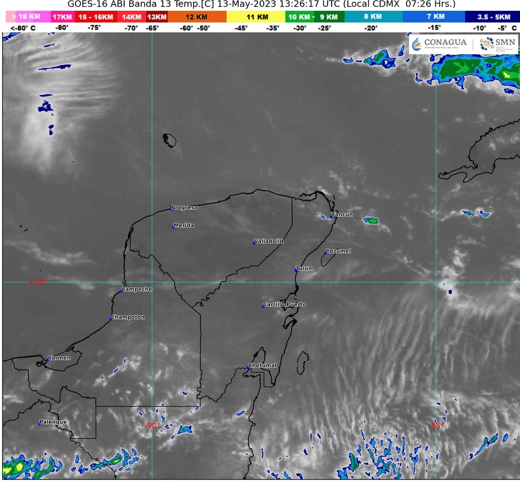 Para la Península de Yucatán se espera cielo medio nublado por la mañana, y nublado durante la tarde con intervalos de chubascos y descargas eléctricas en Campeche y Quintana Roo.