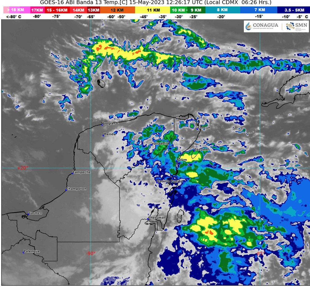 Esperan para la Península de Yucatán cielo medio nublado por la mañana y nublado durante la tarde con lluvias fuertes, descargas eléctricas y posible caída de granizo, en Campeche, Yucatán y Quintana Roo.