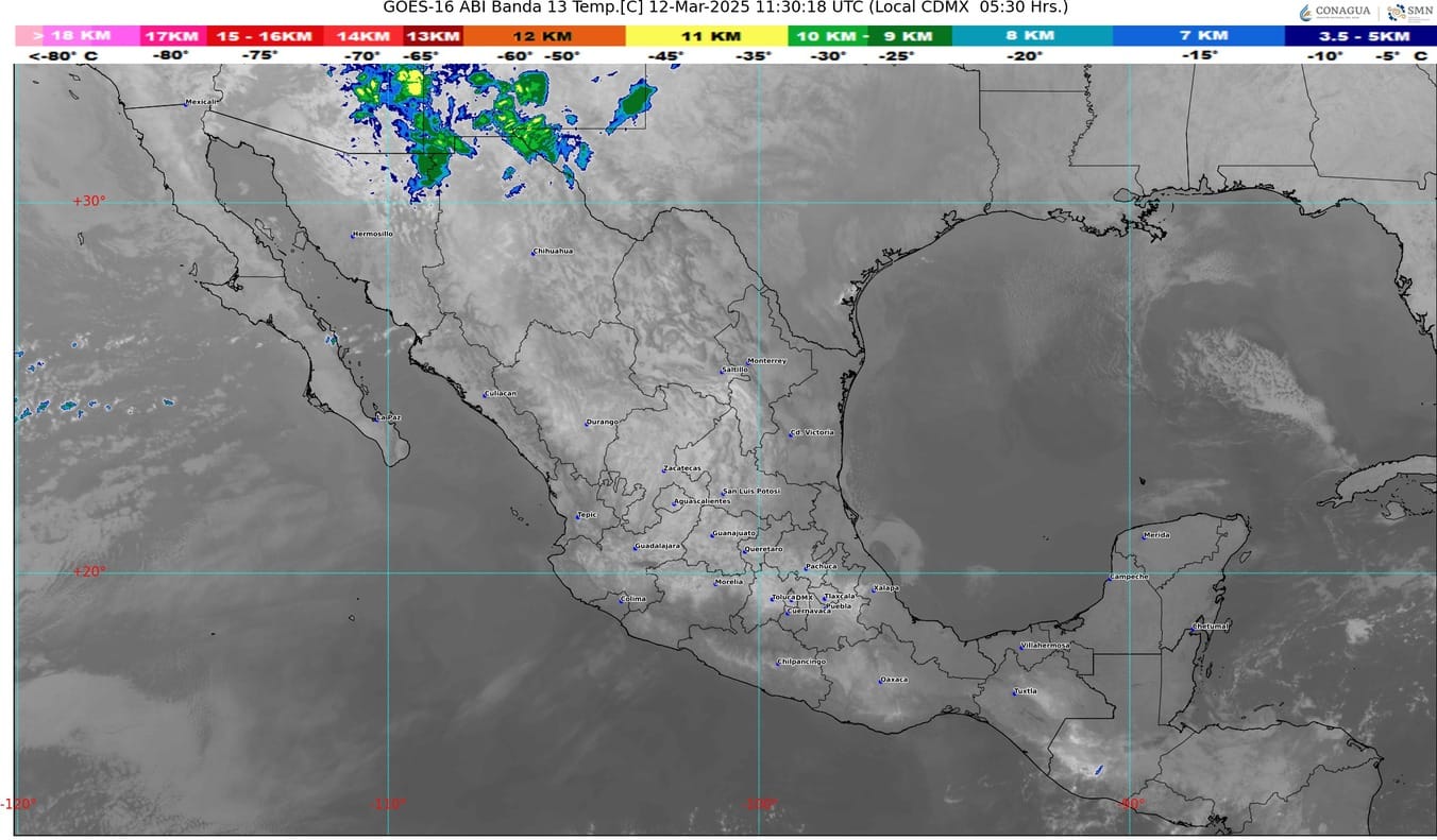 Al finalizar el día, un nuevo frente frío se aproximará al noroeste del territorio mexicano, asociado con una vaguada polar, ocasionarán fuertes rachas de viento en dicha región.
