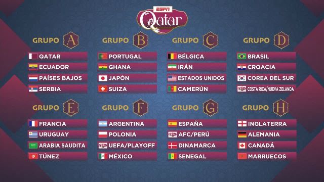 Grupo G: España, Dinamarca, Senegal y Australia/Emiratos Árabes Unidos o Perú